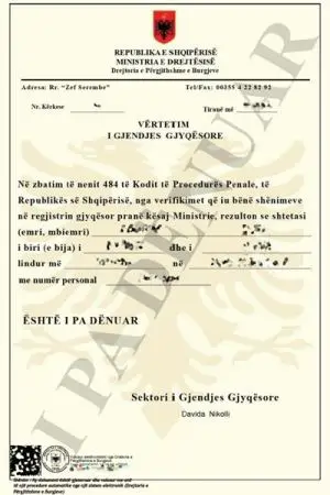 Certified translations of Albanian Criminal Record Certificates