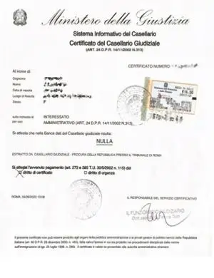- We can obtain criminal record certificates directly in Italy for clients requiring Apostille Stamps or consular legalization.