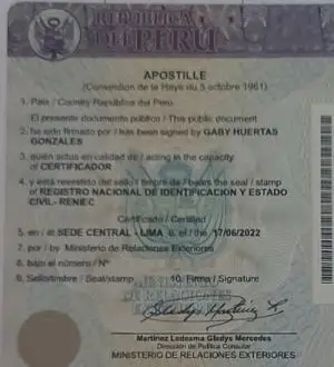 Peruvian Documents that can be authenticated with Apostille Stamps